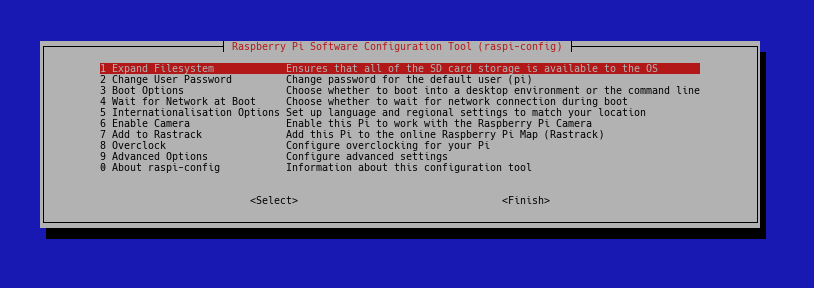Das geflashte Dateisystem wird generell nicht die SD-Karte ausfüllen. Das wird aber in den meisten Fällen gewünscht sein. Über Expand Filesystem lässt sich das bewerkstelligen. Spätestens jetzt wird ein Reboot des Systems sinnvoll