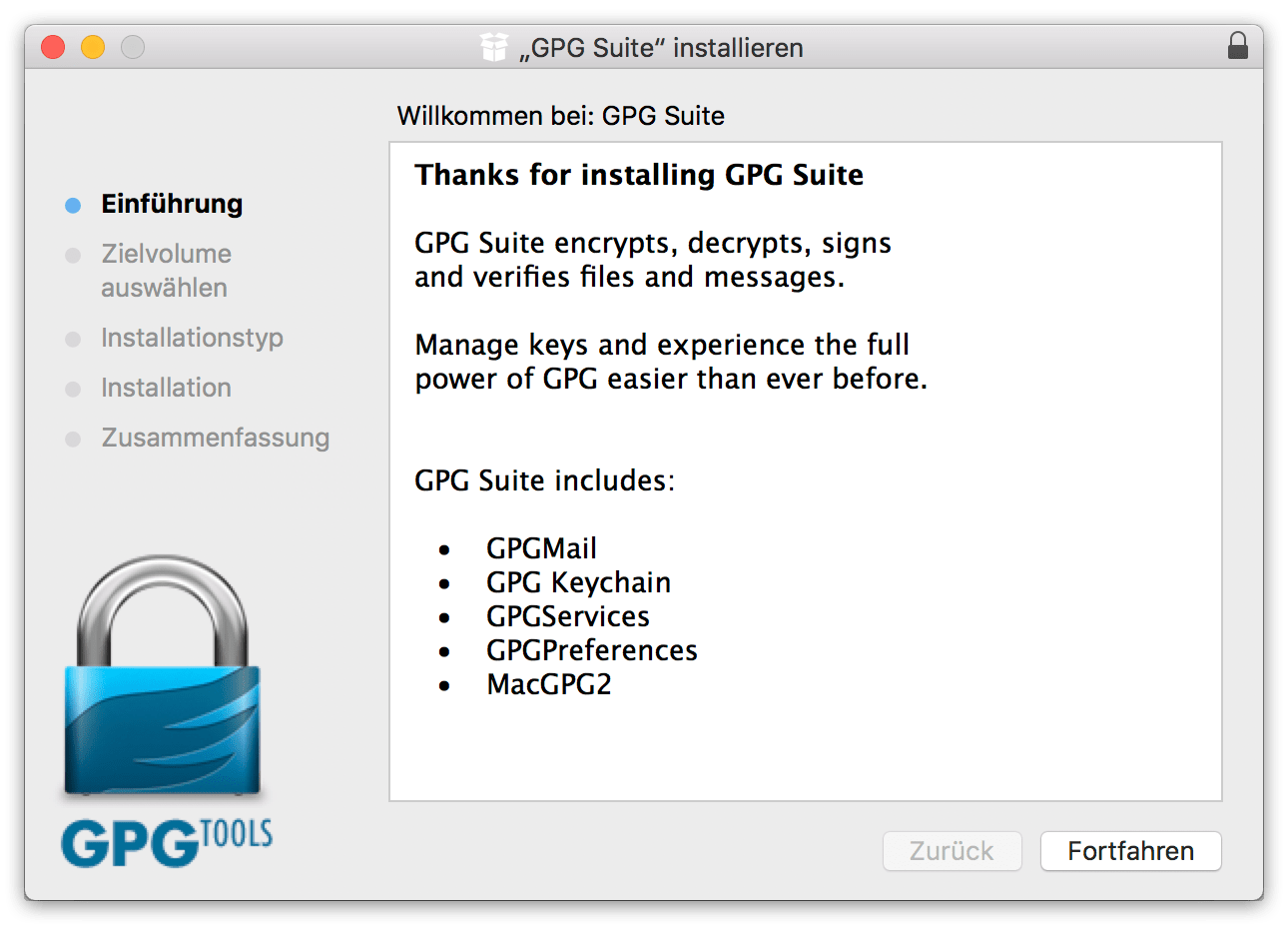 Um GnuPG installieren zu können, benötigen Sie Administrationsrechte auf dem macOS-System!